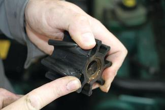 Merivesipumpun impelleri (kumisiipi) kannattaa ottaa irti talveksi ja keväällä asentaa uusi tiivisteineen. Impellerin kumisiivet ovat taittuneet melkoisesti koko talven ajan ja saattavat murtua kesken ajon. Kumisiipi ei myöskään kestä pakkasnestettä vaan se turpoaa paikoillaan. Näin turvaat moitteettoman jäähdytyksen seuraavana kesänä.